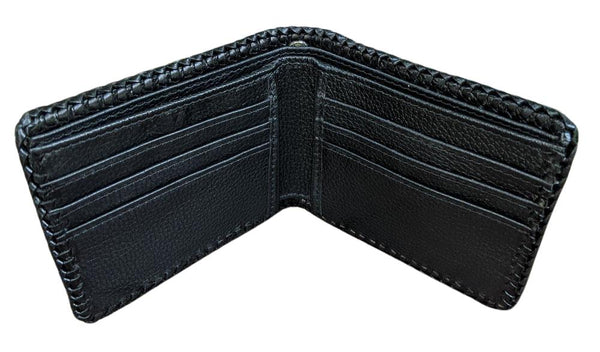 Сердце кошелька - оригинальная аппликация байкерского креста из кожи ската. Его текстура, напоминающая гальку, не имеет себе равных. Он похож на крошечный жемчуг и сияет наравне с ним. Но выдающийся внешний вид - не единственное, за что мы любим кожу ската. Это также один из самых прочных материалов для кошельков. В качестве доказательства подлинности и превосходного качества мы выбрали самую ценную спинную часть шкуры ската. Этот привлекательный дизайн помещен на воловью кожу. Его зернистая текстура отлично сочетается с неровностями ската. Хотя эта популярная кожа немного менее прочна, чем скат, она предлагает гибкость и мягкость, которые морская рыба просто не может обеспечить. Это позволило нам добавить интересную плетеную деталь по краю и внутреннюю часть из плотной кожи.