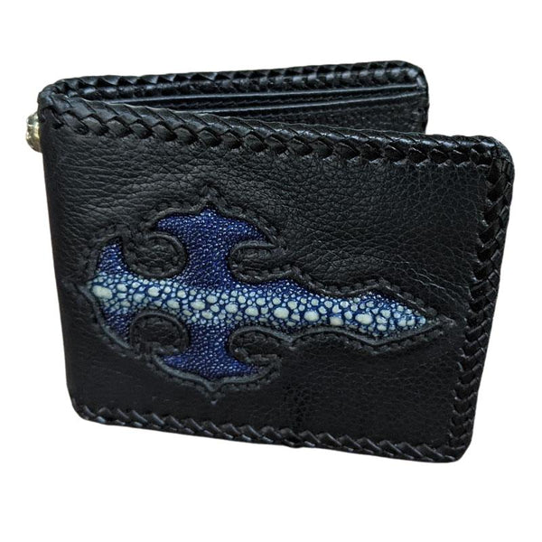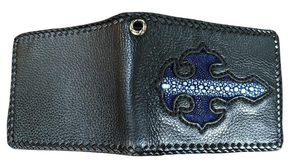 КОЖАНЫЙ БАЙКЕРСКИЙ КОШЕЛЕК GOTHIC CROSS INLAID GENUINE BLUE ROW STONE STONE STINGRAY SKIN ~ НОВИНКА