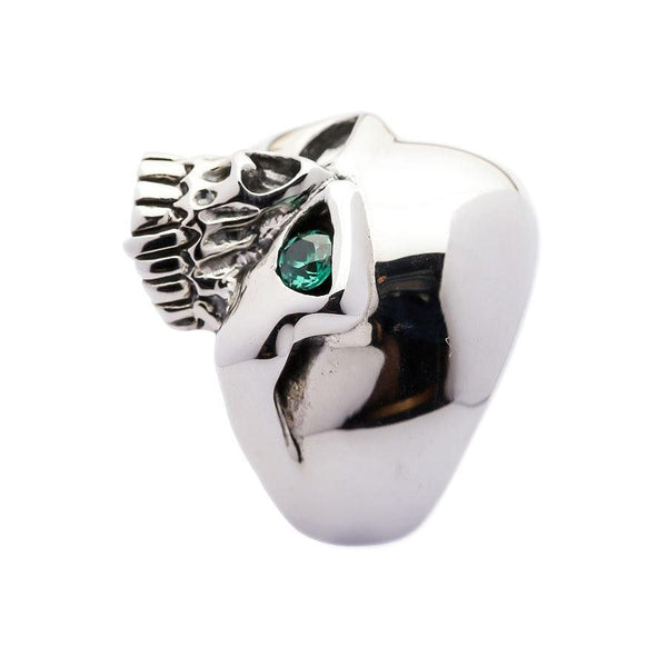 Это кольцо со всеми его деталями и замысловатостью требует от владельца уверенности в уникальном стиле. Он был создан с особой тщательностью для мужчин, желающих источать ощущение мужественности и силы. Сверкающие глаза черепа смотрят прямо в вашу душу, а изогнутая полоса создана для комфортного сидения в течение всего дня.