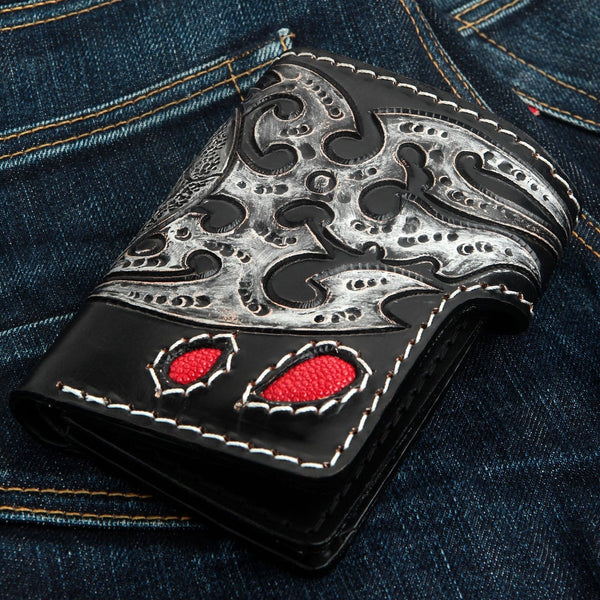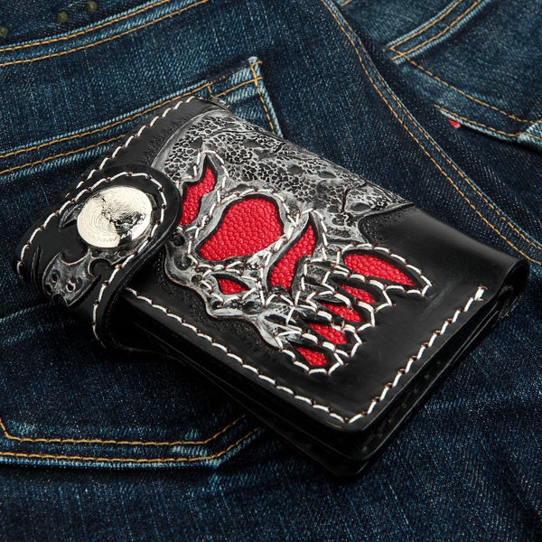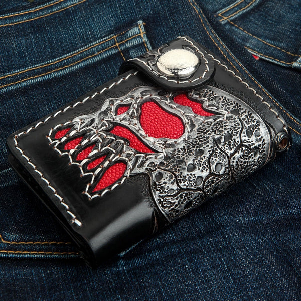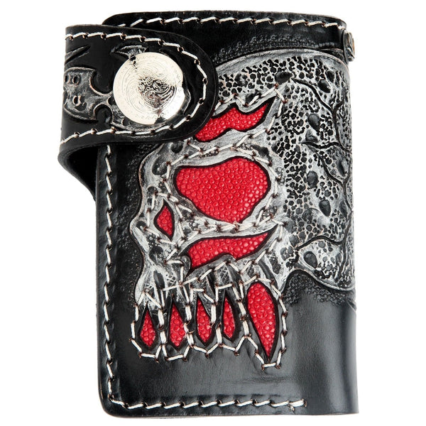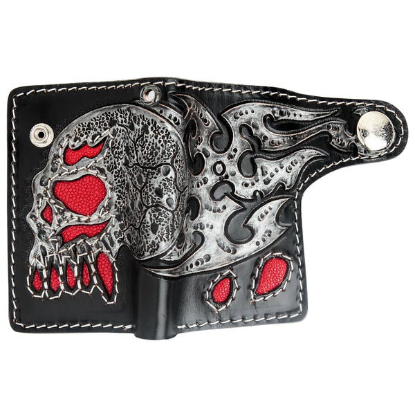 Red Stingray Inlay Genuine Leather Skull Rider Biker Wallet